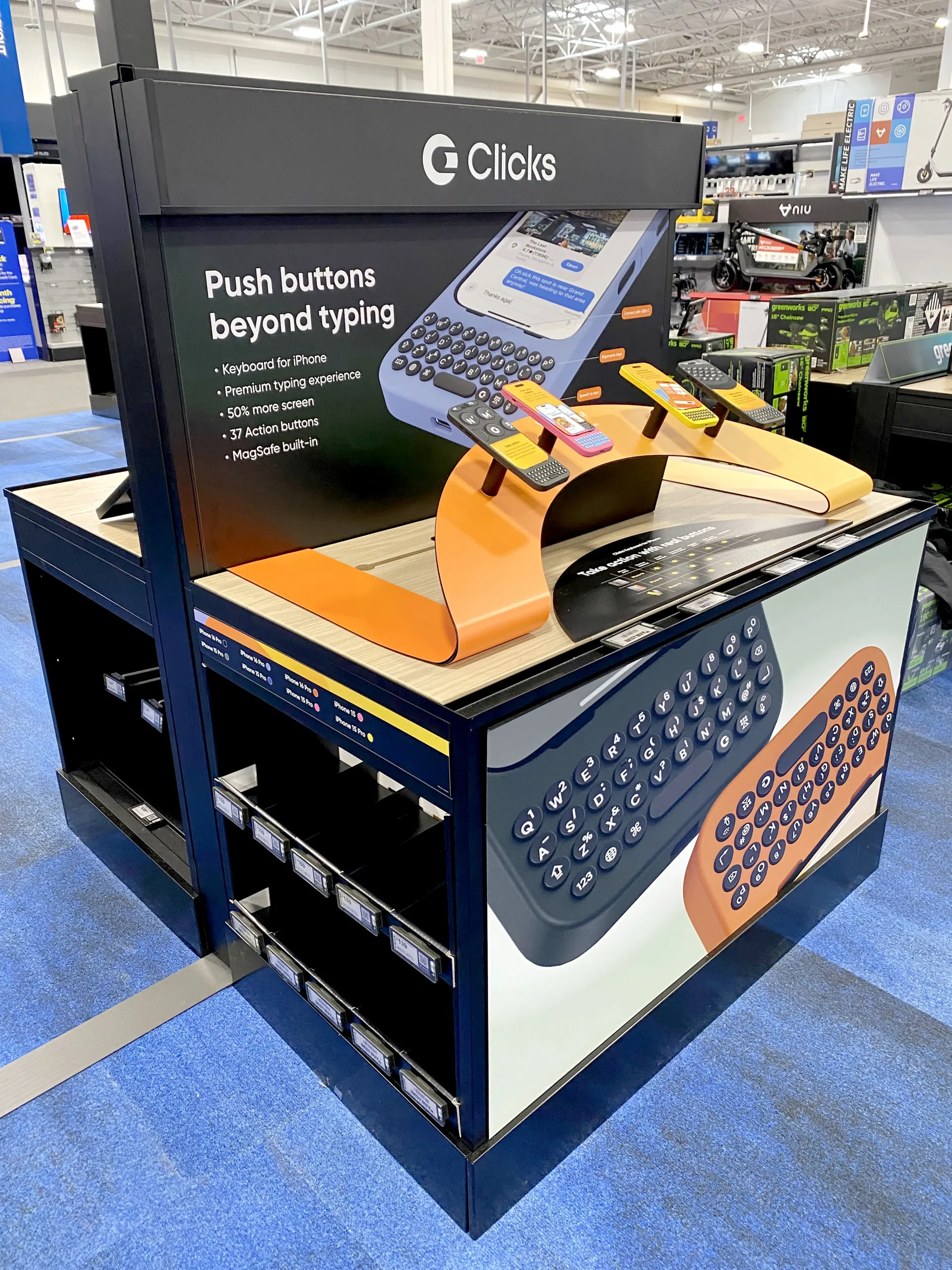 Clicks partnered with TBG to create an immersive storytelling experience in Best Buy’s new Theater District — a space designed to educate and inspire shoppers. Drawing from Clicks’ vibrant marketing imagery and aligning with Best Buy’s new design standards, TBG delivered a striking and functional display showcasing Clicks’ new iPhone keyboard accessory.