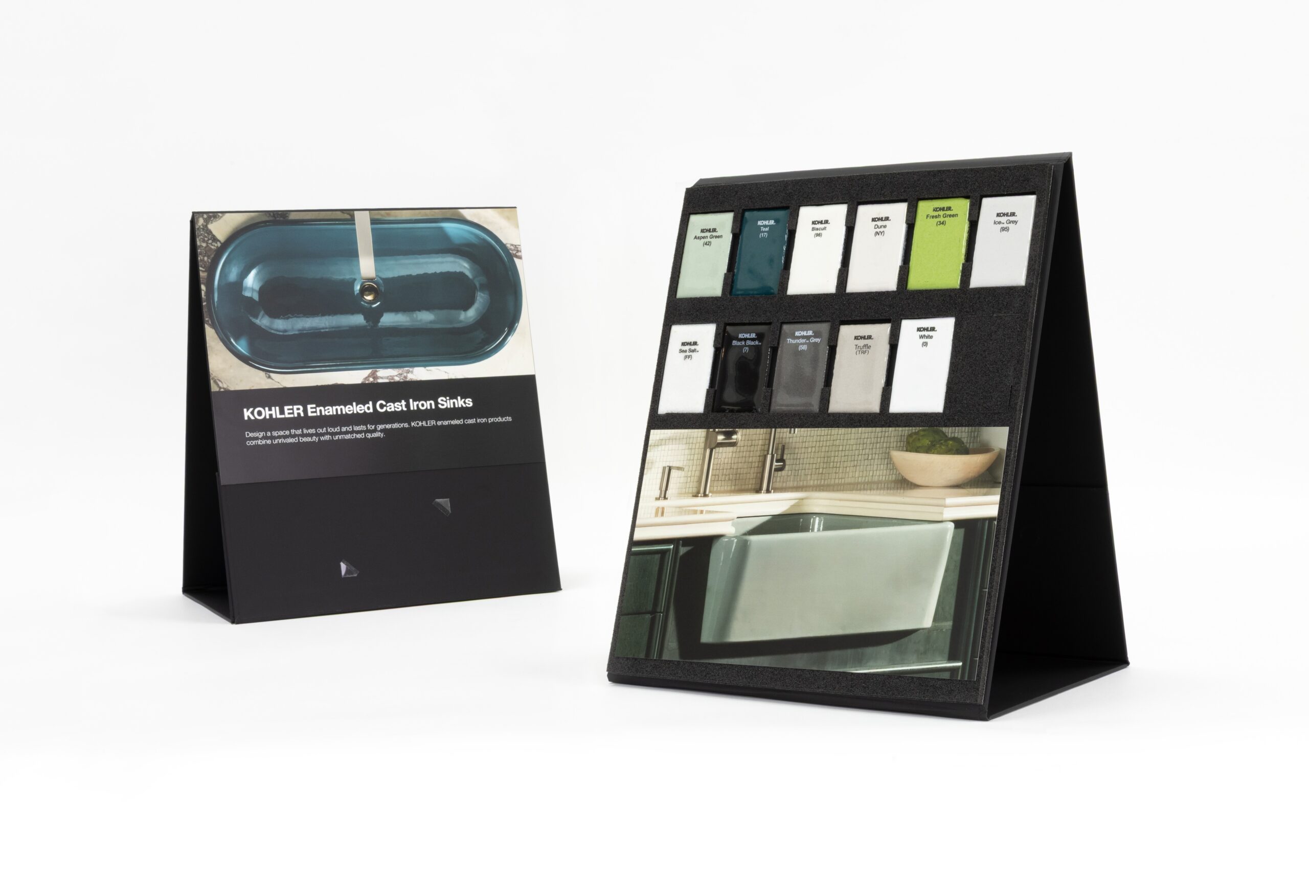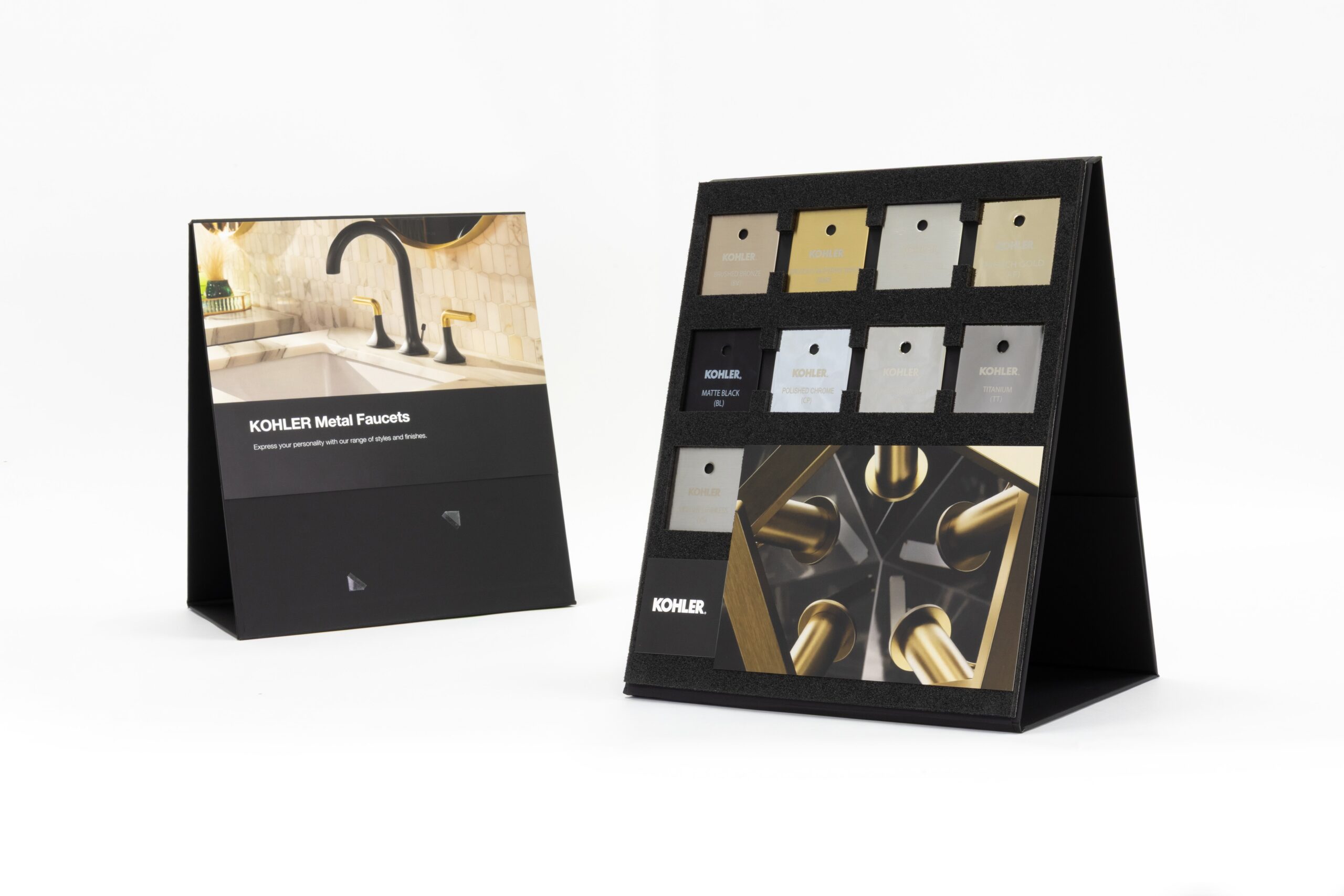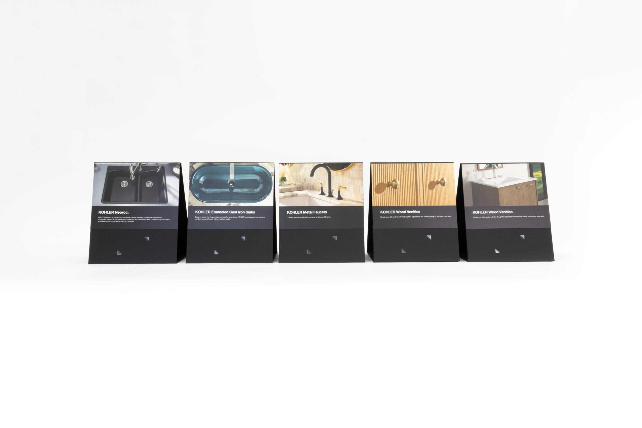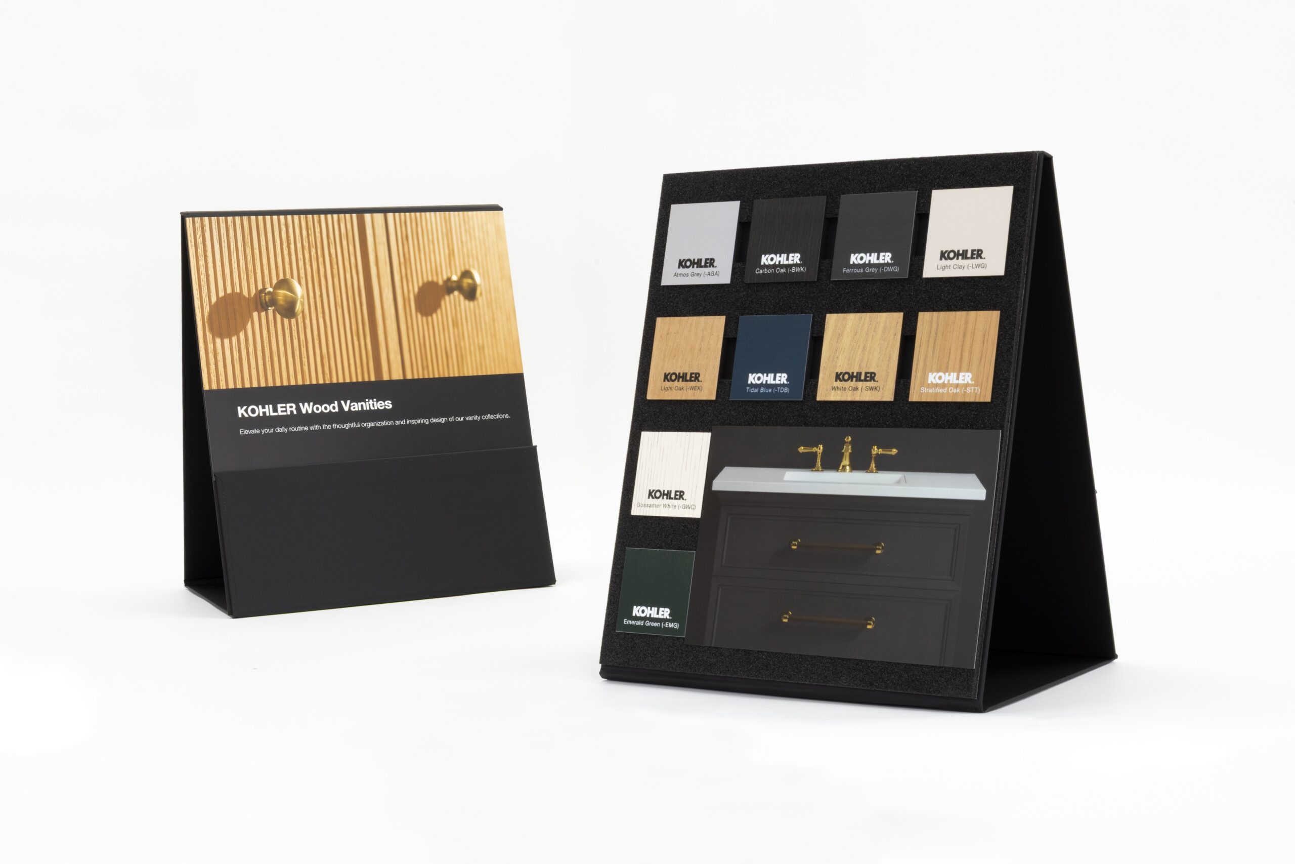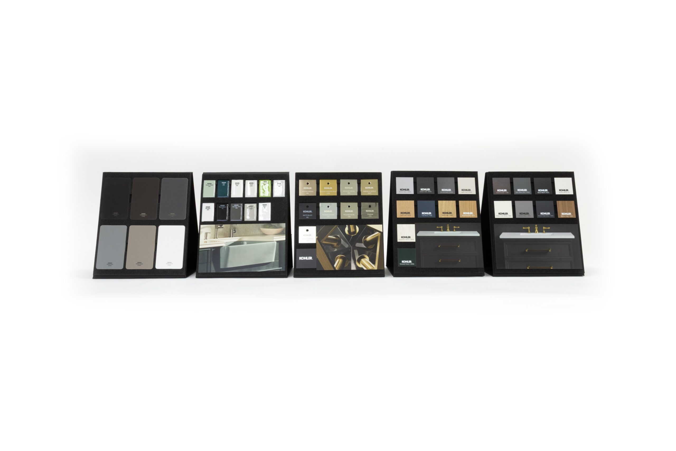 Kohler sought a streamlined way to consolidate, curate, and present material, finish, and color options across their sink, faucet, and vanity collections. TBG answered with a sophisticated portfolio of sample books, elegantly showcased in more than 60 stores, select designer programs, and 600 showrooms nationwide. Designed to expand and evolve, the volumes provide Kohler and their customers with confidence, ease, speed, and inspiration—helping shoppers explore look and feel to make decisions that bring their vision to life.